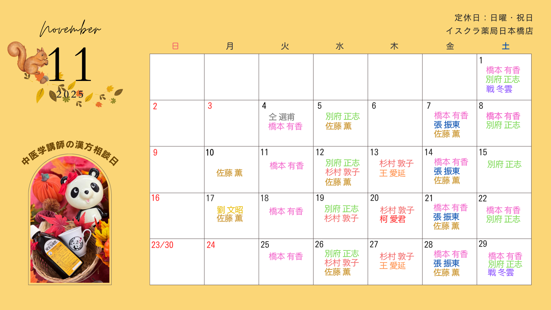 ●仝選甫(とんせんほ)…次回の相談日は11/4(火)です。