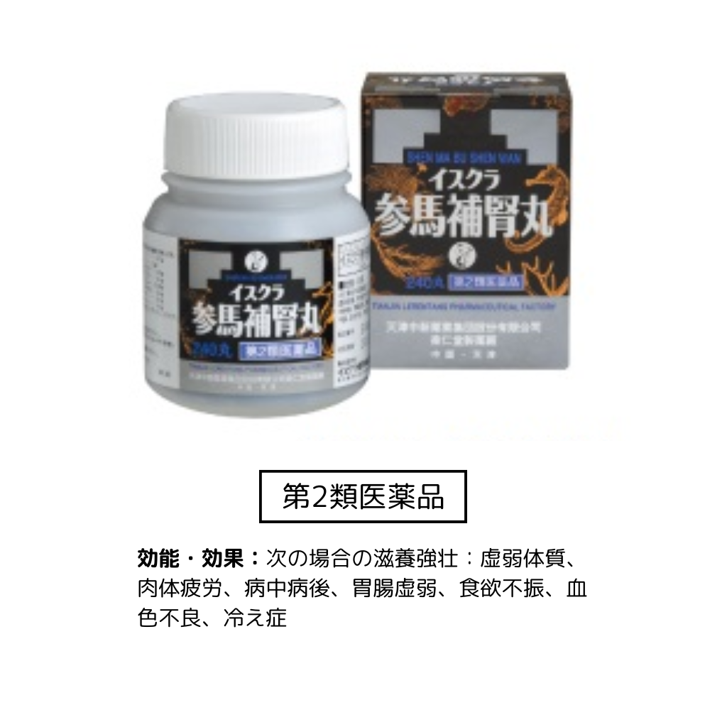 漢方薬の一例:参馬補腎丸、双料参茸丸、加味聚精丸、食用蟻配合食品など