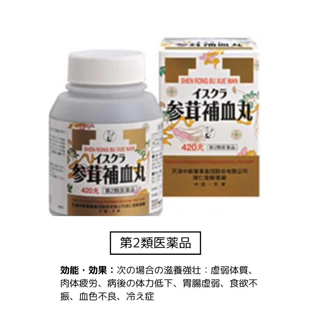 おすすめ漢方:参茸補血丸、双料参茸丸、加減亀鹿二仙膠、哈士膜油配合食品、当帰芍薬散など