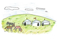 草原地帯ではパオ(移動式の住居)での生活でした。