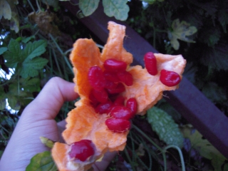 下から割れて真っ赤な種が数々・・・。