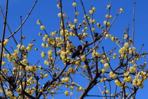 ロウバイ(蝋梅)がとてもいい香りで見ごろを迎えていました。