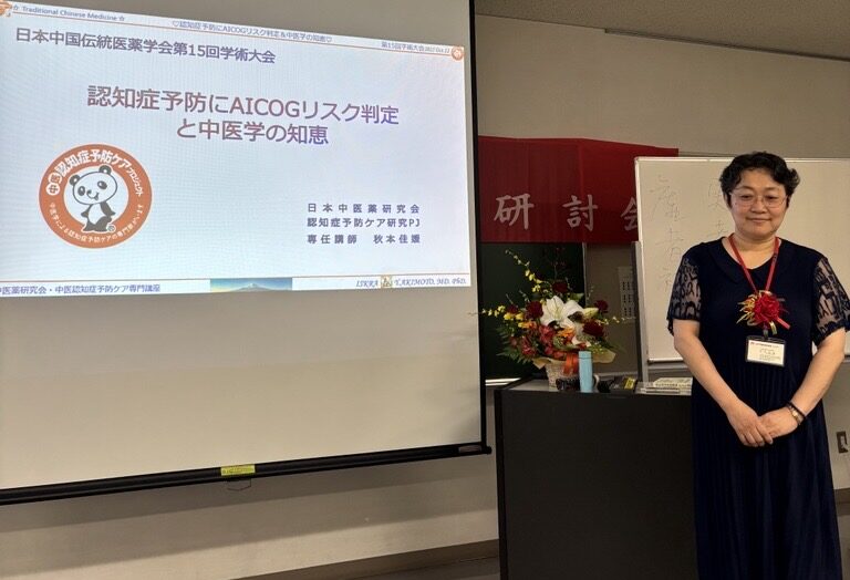 秋本先生は中医学で考える認知症予防やAICOG(アイコグ)という東京大学が開発した健康診断データ(血液検査)だけで、認知機能の状態が分かるツールのお話等を講演されました。
