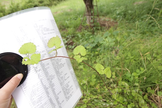 実は私はこの日に先生から頂いたカラスビシャクの根を持ち帰りまして、水につけていたら根と芽が出てきました。