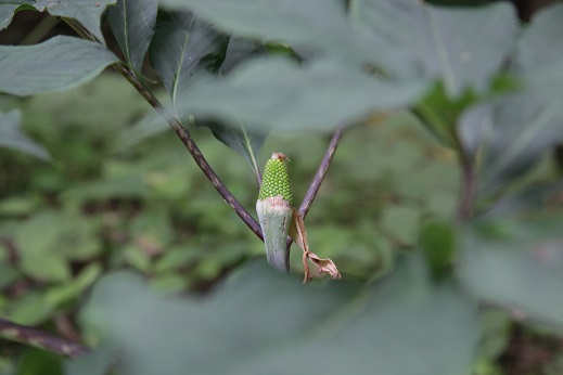 マムシグサ(生薬名:天南星・テンナンショウ:塊茎を使用/燥湿化痰・祛風解痙・解毒消腫)